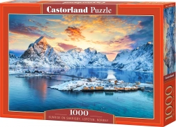 Otkrijte ljepotu norveškog lofotskog arhipelaga uz ovu puzzle od 1000 dijelova koja prikazuje izlazak sunca nad Sakrisøyem. Idealno za ljubitelje prirode i slagalica!
