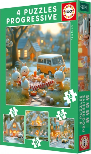 Otkrijte radost slaganja s ovim setom EDUCA Zečji grad 4u1. Set nudi četiri različite puzzla s postupnim povećanjem težine: