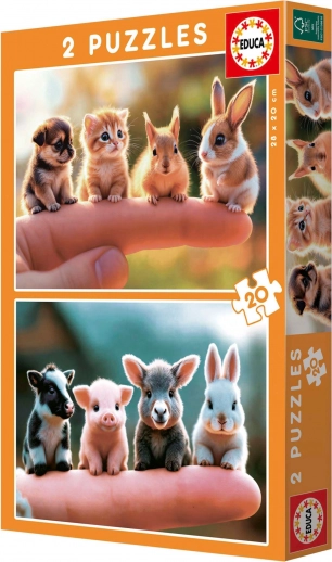 Educa Puzzle Male životinjice donose zabavu i kreativni izazov za malu djecu. Set sadrži dvije slagalice, svaka dimenzija 28 x 20 cm.