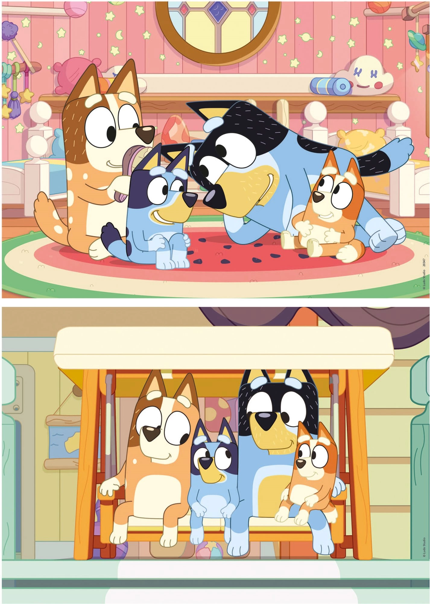 Otkrijte čudesan svijet Bluey s ovim kvalitetnim drvenim puzzlama od EDUCA. Svaka kutija sadrži dvije puzzle koje su: