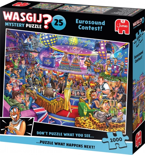 Puzzle Wasgij Mystery 25: Natjecanje Eurosound nije obična slagalica. Serija Wasgij mijenja pravila igre jer ne nudi tradicionalnu sliku koju treba složiti. Umjesto toga morate upotrijebiti maštu i tragove kako biste otkrili koju ćete sliku slagati. To je zagonetka sama po sebi, što slaganje čini još zabavnijim i upečatljivijim.