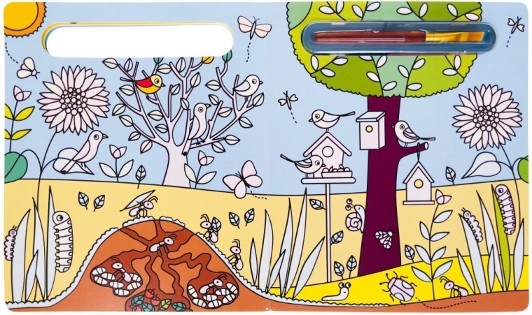 Ova knjiga s čvrstim tvrdom ukoričenom povezom idealan je izbor za male zaljubljenike u slikanje. Sadrži prekrasne ilustracije vrtnih životinja koje čekaju vašu kreativnost. Posebna tehnologija omogućuje bojama da nestanu nakon sušenja, tako da možete slikati iznova i iznova.