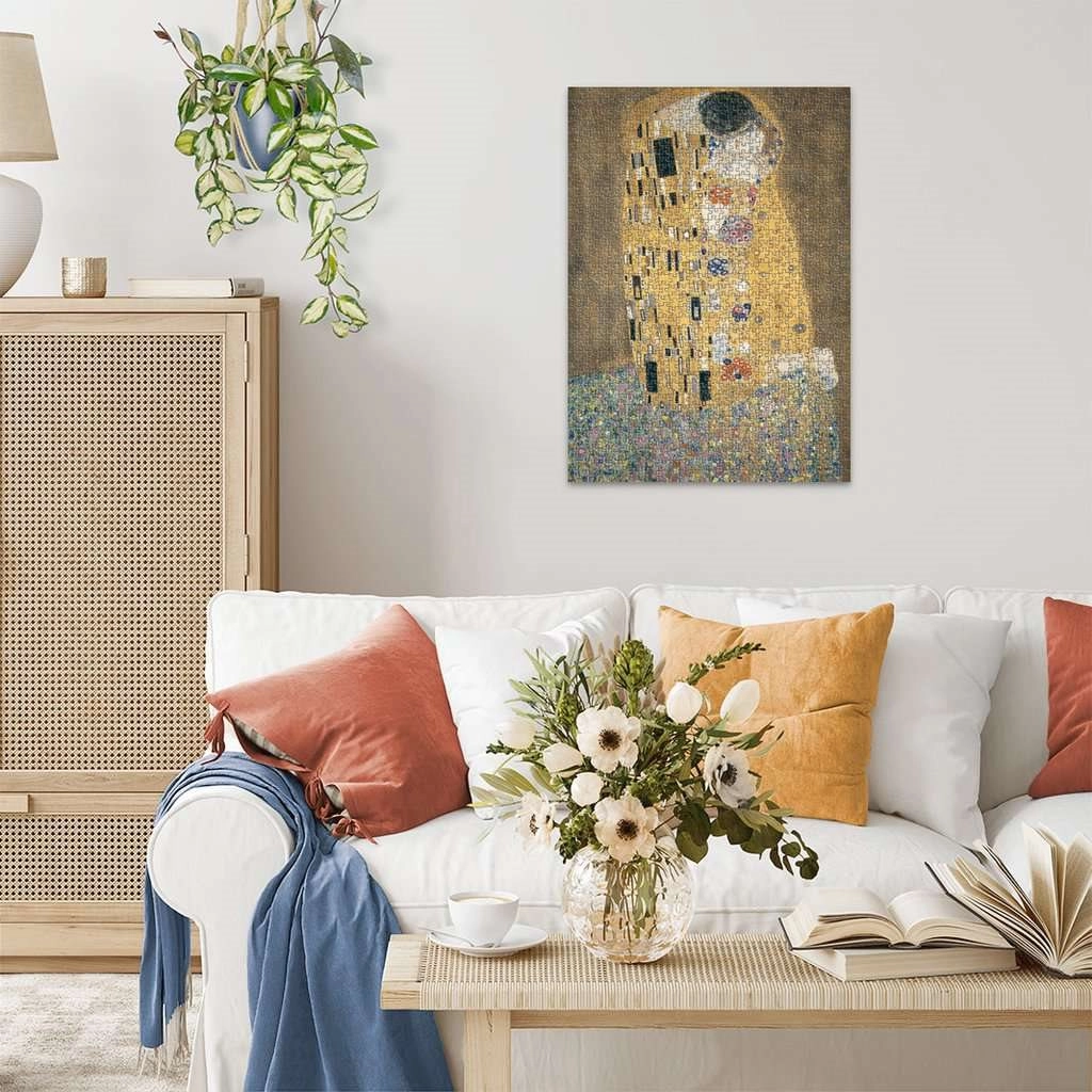 Ovaj poseban dizajn nadahnut slavnom slikom 'Poljubac' omogućuje vam da cijenite ljepotu umjetnosti u udobnosti vlastitog doma. Savršen način za provođenje slobodnog vremena ili kao poklon za ljubitelje umjetnosti.