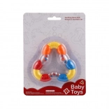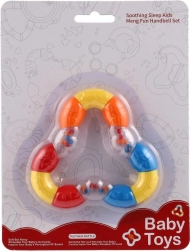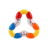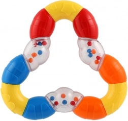 Ova multifunkcionalna zvečka i grickalica u obliku trokuta dizajnirana je posebno za najmlađu djecu. Zahvaljujući fleksibilnoj plastici lako ju je uhvatiti i malim ručicama te nudi ugodnu površinu za grickanje, što pomaže umiriti desni. Nježan zvuk zvečkanja ujedno potiče slušno opažanje i privlači djetetovu pažnju.