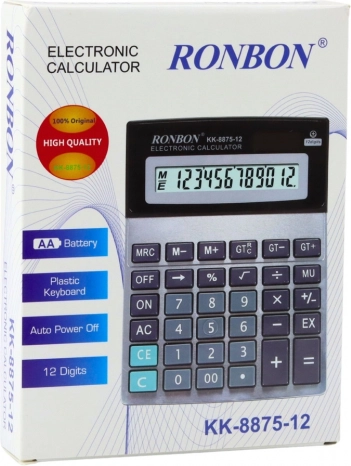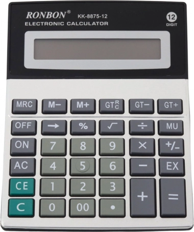 Kalkulator Ronbon KK-8875-12 nudi sve važne funkcije potrebne za svakodnevne izračune. Osim osnovnih matematičkih operacija omogućuje i postotne izračune, kvadratni korijen, memorijske funkcije (MRC, M+, M-), funkciju Grand Total (GT) za zbrajanje i markup (MU) za izračun marže.