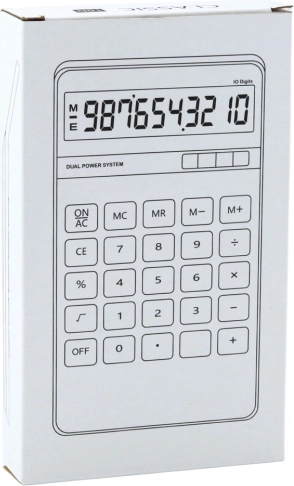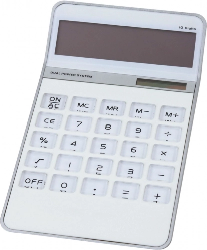 Bijeli uredski kalkulator s 10-znamenkastim zaslonom