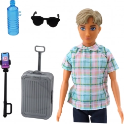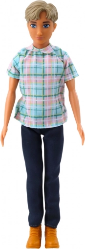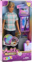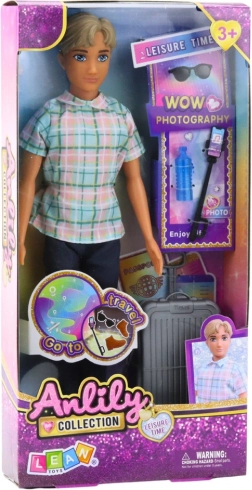 Lutka dječak Anlily odjevena je u modernu košulju s kariranim uzorkom, tamnoplave hlače i smeđe cipele. Na raspolaganju su stilski dodaci poput sivog kofera na kotačićima s izvlačnom ručkom, selfie štapa s telefonom, sunčanih naočala i boce za vodu.