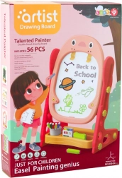Set sadrži: dvostrana magnetska ploča, raznobojne krede, suho brisivi markeri, magneti sa slovima i brojevima, ravnalo – spirograf, spužva za brisanje, polica i držač za pribor, set društvenih edukativnih igara, upute za montažu.