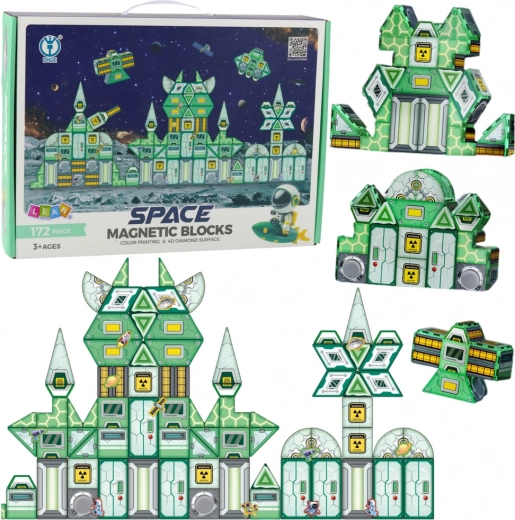 Magnetski konstrukcijski setovi Kosmos omogućuju djeci kreativnu igru inspiriranu temom svemira. Zahvaljujući modernom dizajnu i bojama, zajedno s grafičkim elementima, svaka slagalica je jedinstvena. Ovaj set sadrži čak 172 različita dijela koji uključuju trokute, kvadrate, rombove, 3D panele i dekorativne pločice s grafikom.