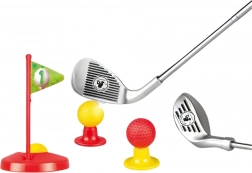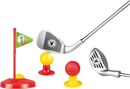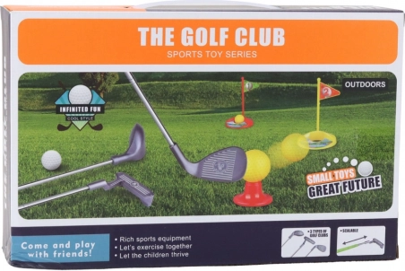 Ovaj dječji set za golf idealan je za razne vrste igara i natjecanja. Sadrži tri različite golf palice, tri šarene loptice (bijela, crvena, žuta), dvije baze i dvije rupe s zastavicama. Realističan izgled i kvalitetna izrada daju djeci osjećaj da su pravi golferi. Set je pogodan za djecu od 3 godine. Može se koristiti za igru samostalno ili s vršnjacima, čime se uči zdravo natjecanje.