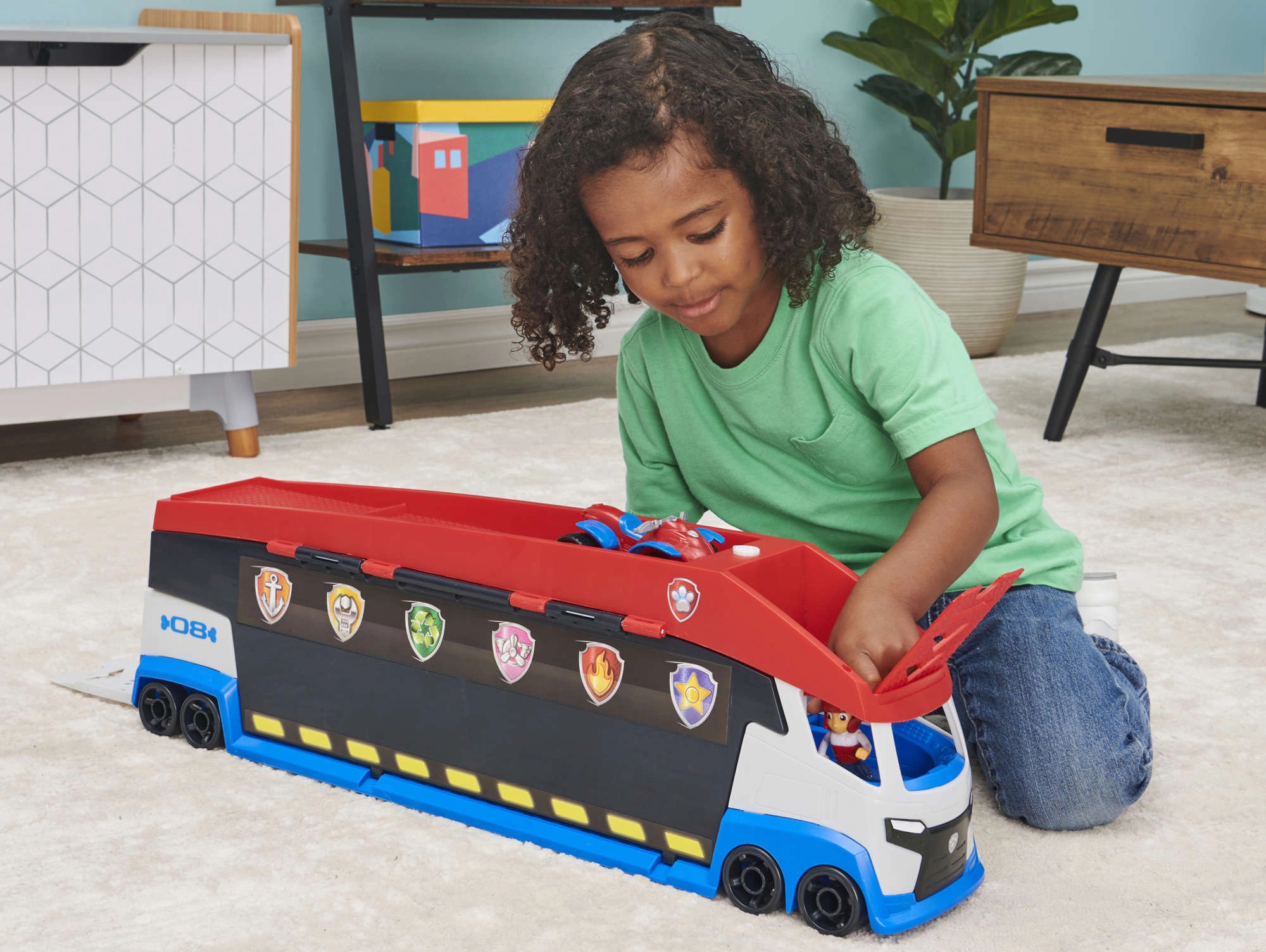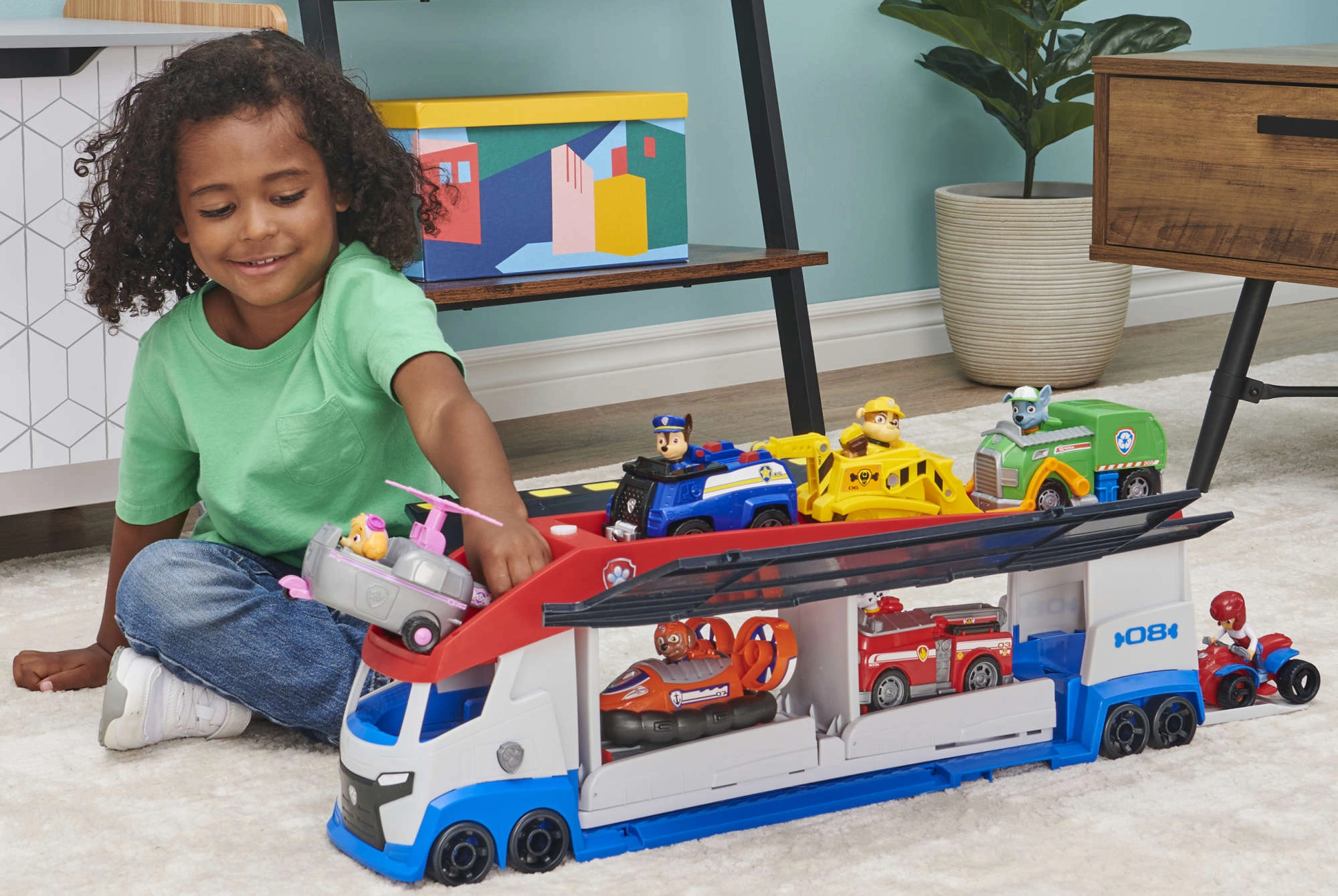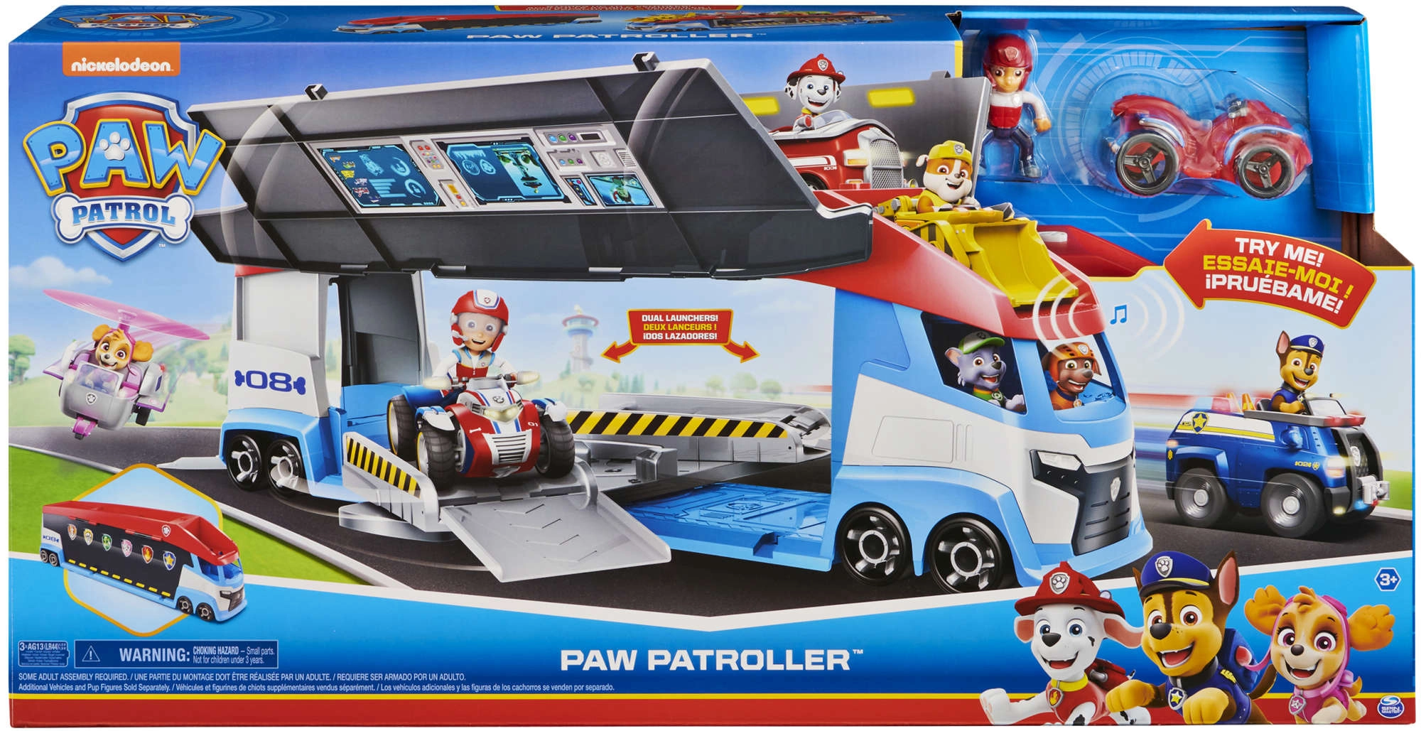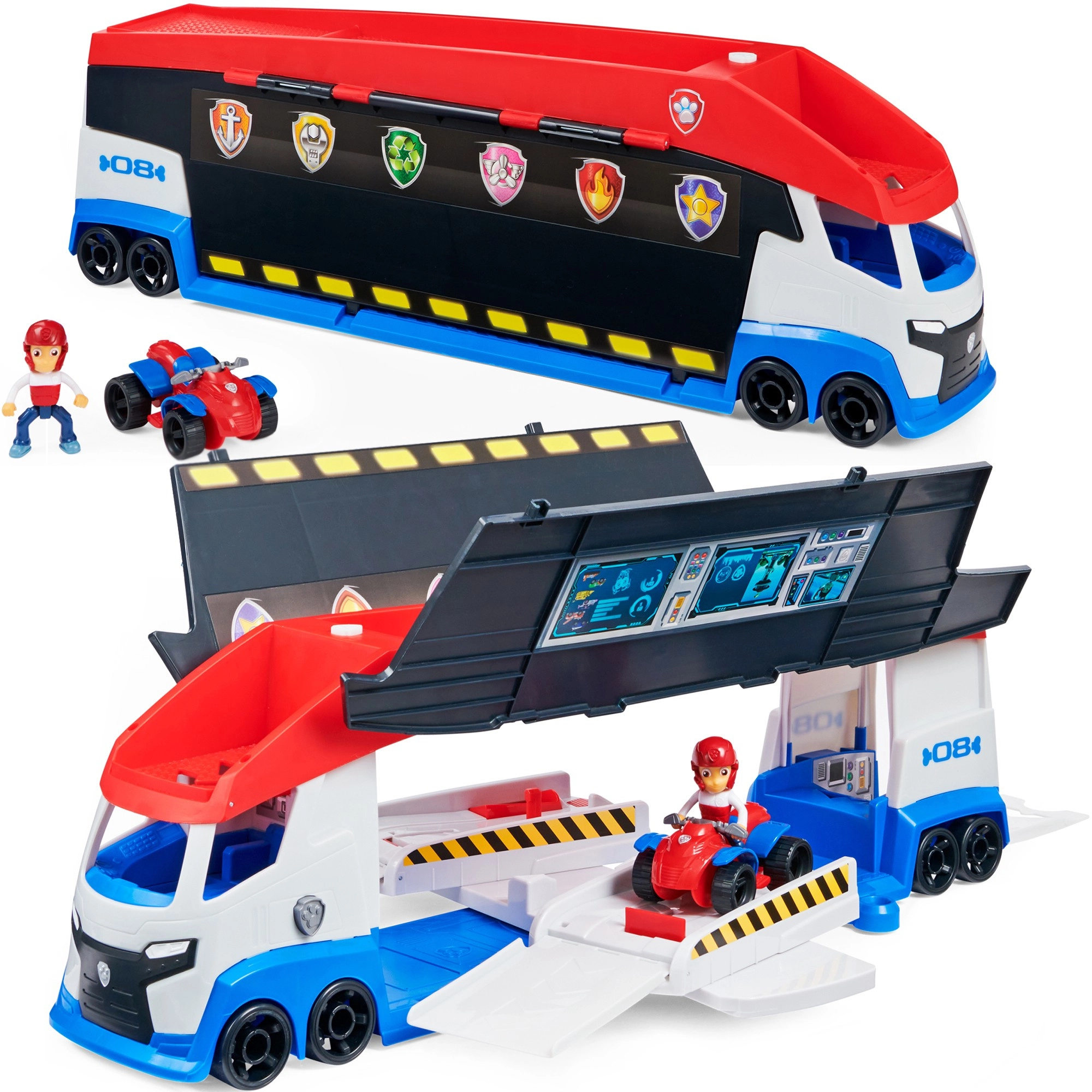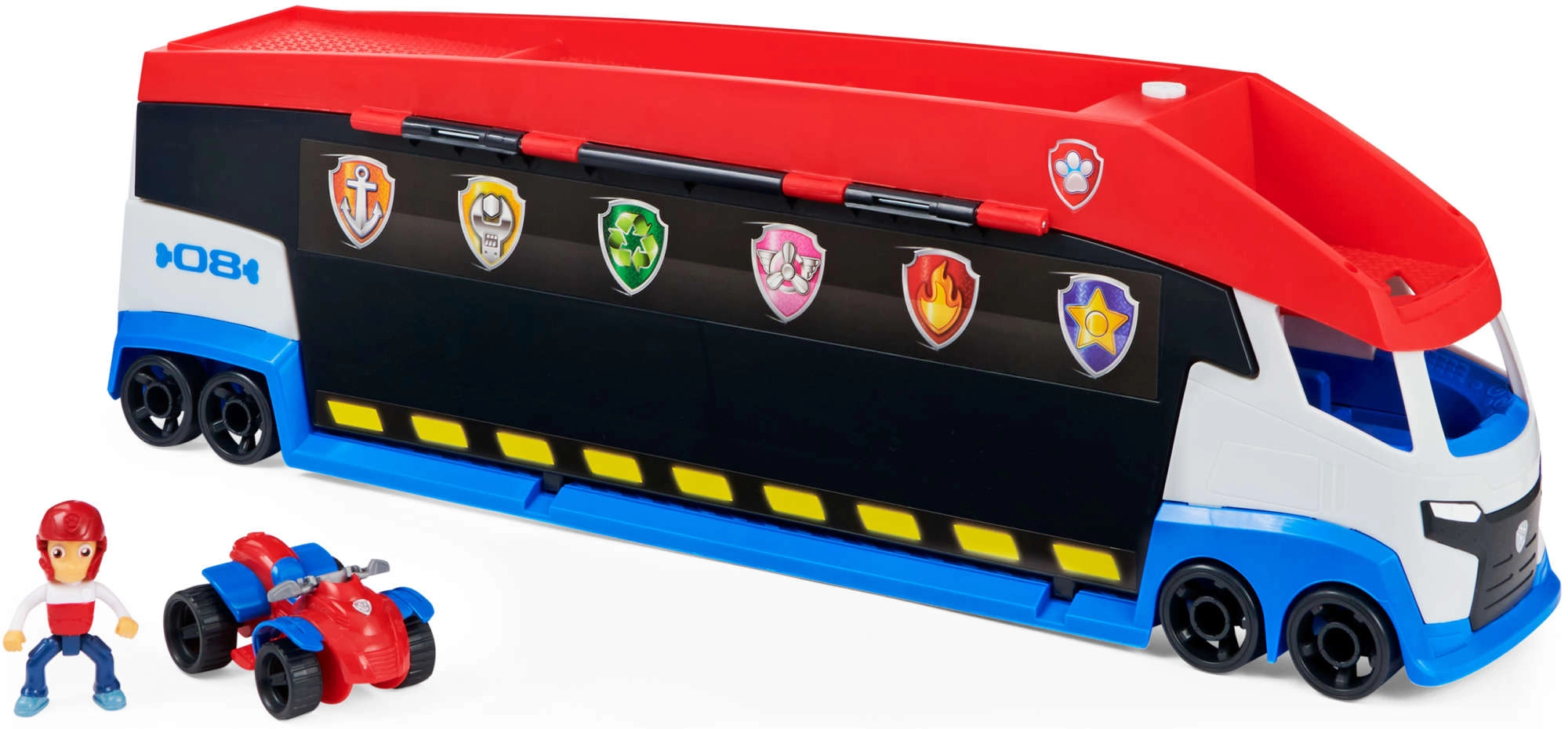 Patrolni kamion lako prevozi do 6 vozila (kompatibilno sa standardnim autićima PAW PATROL), ima 2 izbacivača za brzi start u akciju i podizna bočna vrata za nesmetano ulaženje. S priloženom figurom Rydera i njegovim četverociklom djeca odmah kreću na misiju.