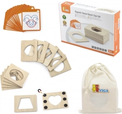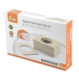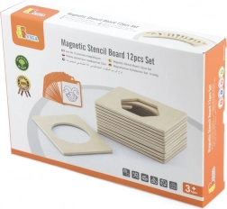 Ovaj jedinstveni set sadrži 12 komada drvenih šablona, idealnih za djecu od 3 godine. Svaka šablona ima magnetsku podlogu koja olakšava rukovanje i osigurava da ostane na mjestu.