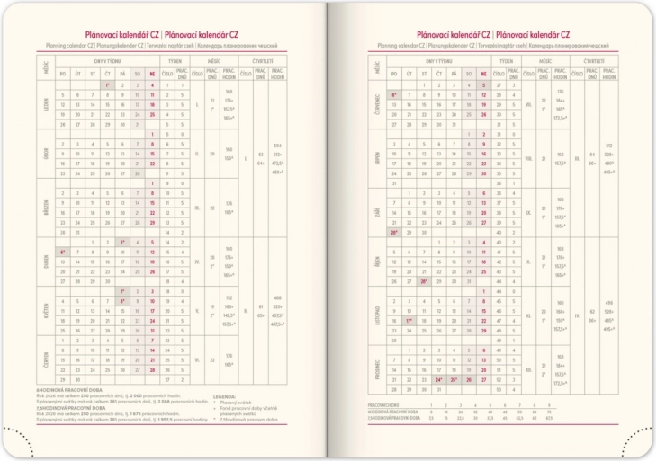 - Višejezični kalendar: češko-slovački s dodatnom engleskom, njemačkom, mađarskom i ruskom.
