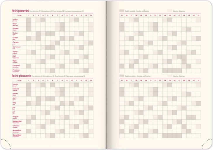 - Planerski kalendari: Mjesečni kalendar za 2026. i 2027., godišnje planiranje za 2026.–2027. te radni planerski kalendar.