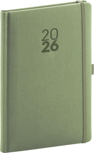 Elegantni tjedni planer Diamante 2026 u maslinastoj boji s finom teksturom koja podsjeća na brušenje dijamanta, idealan za osobno i poslovno planiranje.