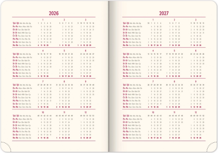 - Tjedni raspored s češko-slovačkim kalendarijem i podrškom za engleski, njemački, mađarski i ruski jezik.