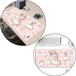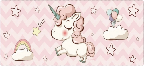 Podloga je izrađena od mekane, ali izdržljive gume koja osigurava stabilno prianjanje na površinu stola i sprječava klizanje. Gornji sloj materijala je ugodan na dodir i otporan na habanje. Ružičasti dizajn s motivima jednoroga, oblaka i zvjezdica donosi bajkovitu atmosferu i osvježava prostor.