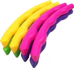 Obruč promjera 50 cm sastoji se od 7 laganih i lako spojivih dijelova, što omogućuje brzu montažu te jednostavno prenošenje i skladištenje – savršeno za korištenje kod kuće ili na putovanju. Šareni segmenti u žutoj, zelenoj, ljubičastoj i ružičastoj boji daju Hula hopu atraktivan izgled i motivaciju za kretanje.