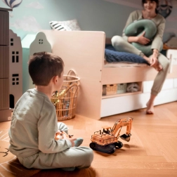 Ova daljinski upravljana igračka savršena je imitacija pravog stroja u mjerilu 1:24. Zahvaljujući intenzivnim bojama i pažljivo izrađenim detaljima, vaša će se soba lako pretvoriti u gradilište. Upravljanje osigurava 2.4 GHz daljinski upravljač. Pogodno za igru ne samo samostalno, već i u grupi s roditeljima ili vršnjacima. U pakiranju se nalaze i 2 signalne table i 2 čunja, koji povećavaju atraktivnost igre.