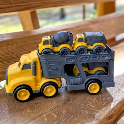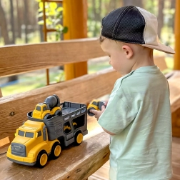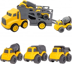 Ovaj svestrani set 4u1 marke WOOPIE donosi djeci svijet gradilišta izravno u dječju sobu. Veliko vučno vozilo s odvojivom platformom lako prevozi tri kompaktna vozila koja zahvaljujući pokretnim dijelovima i trenjskom pogonu na malim autima potiču aktivnu igru i razvoj fine i grube motorike.