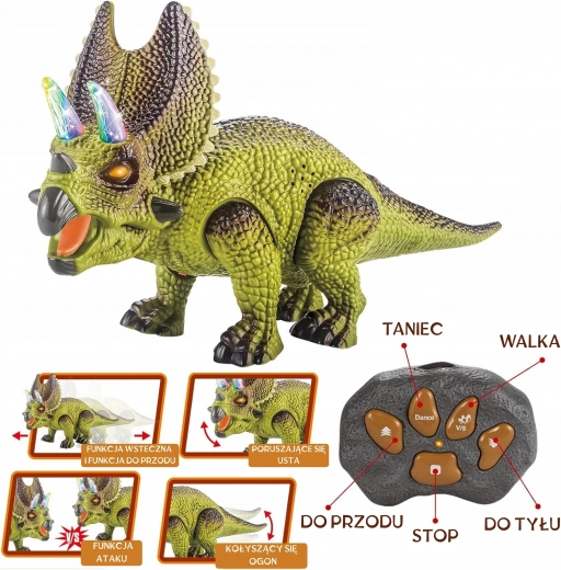 - Dinosaurus se kreće naprijed i natrag, oponašajući hod pravog Triceratopsa