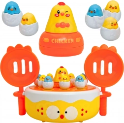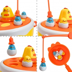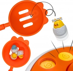 Ova svestrana igračka spaja čak četiri igre u jednom setu, pa djeci zabava dugo ne dosadi. Rotirajuća osnova s glazbom nasumično izdiže piliće koje se može loviti magnetskim štapom ili hvatati lopaticama nakon ispaljivanja iz katapulta. Veće odvojivo pile poslužit će kao razigrani autić.