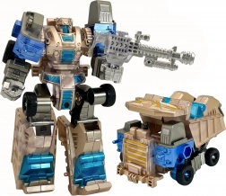 Zabavni set uključuje transformirajućeg robota, dodatno oružje i pribor potreban za preobrazbu u vozilo, uključujući upute.