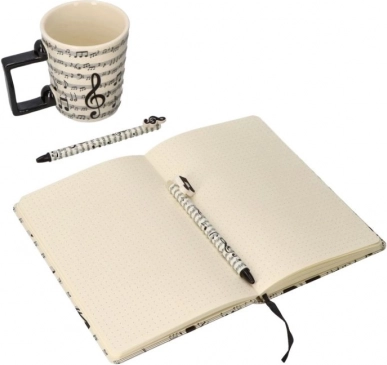 Bilježnica A5 je savršen izbor za one koji traže kvalitetu i kreativni dizajn. Opremljena je tvrdim uvezom s jedinstvenim glazbenim motivom, koji vašim bilješkama daje stil. Unutra ćete pronaći 96 listova s točkastim uzorkom, koji omogućuju lako crtanje i pisanje.