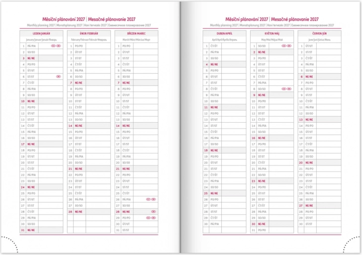 - Mjesečni planerski kalendari za 2026. i 2027.