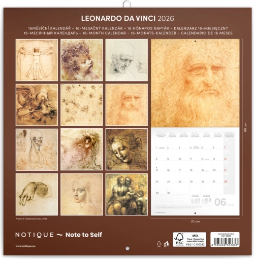 Otkrijte praktičan bilježnički kalendar s dvanaest slika Leonarda da Vincija. Pregledno kalendarij, mjesečeve mijene i prostor za bilješke čine ovaj kalendar idealnim alatom za vašu godinu.