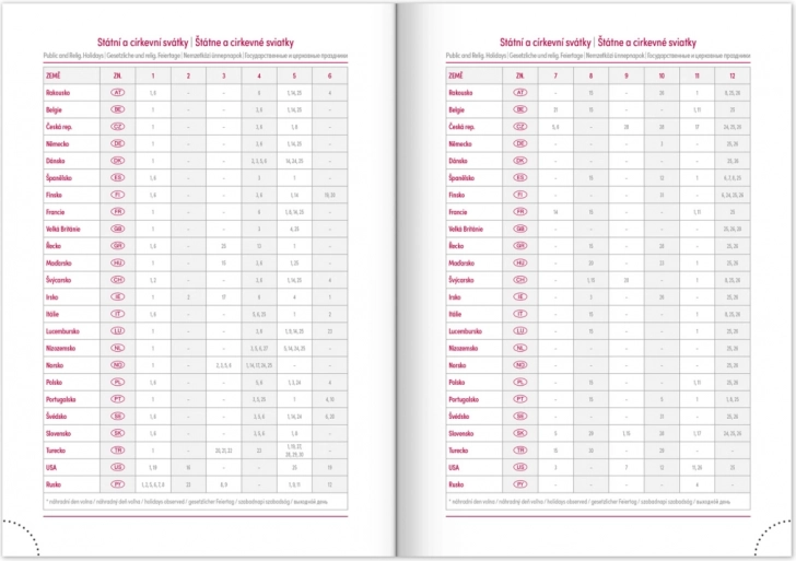 Iskoristite prednost tjednog rasporeda s češko-slovačkim kalendarom nadopunjenim engleskim, njemačkim, mađarskim i ruskim jezikom.