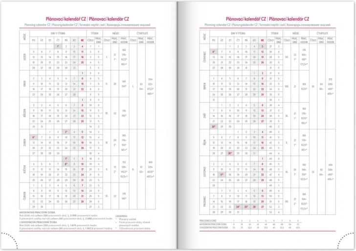 Rokovnik Tomy 2026 osmišljen je za učinkovito planiranje i preglednost. Sadrži tjedni raspored s češko-slovačkim kalendarijem dopunjenim engleskim, njemačkim, mađarskim i ruskim jezikom, što ga čini međunarodno prilagođenim korisnicima. Rokovnik nudi i razne planerske kalendare od 2025. do 2027., uključujući: