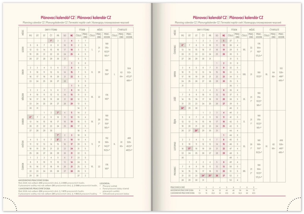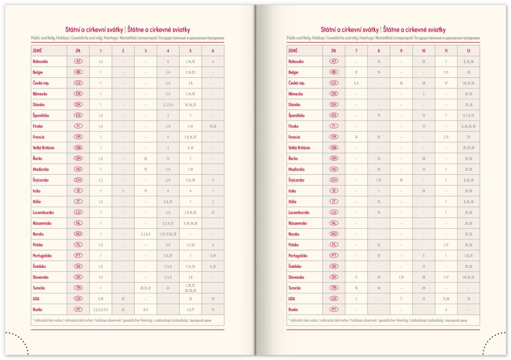 - Radni planerski kalendar i popis blagdana u Češkoj i Slovačkoj Republici