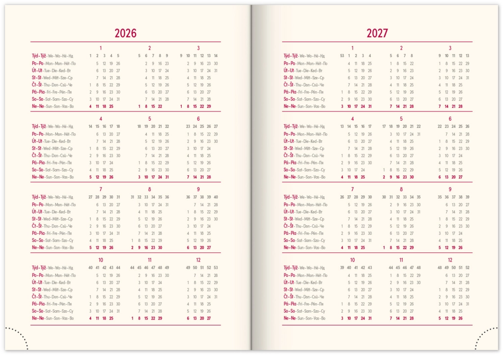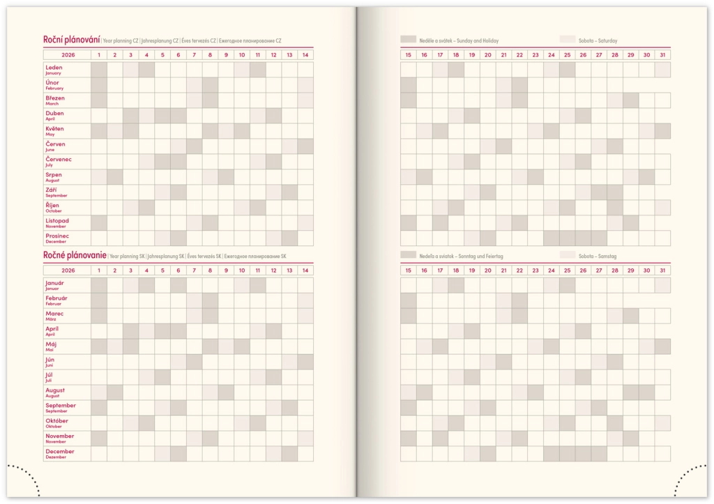 - Mjesečne i godišnje planere za 2026. i 2027.