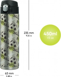 Ovu izvrsnu termos bocu djeca lako koriste već od mlađe školske dobi zahvaljujući intuitivnom otvaranju i praktičnom silikonskom usniku. Zapremnina je 450 ml, a dostupna je u nekoliko razigranih dizajna koje je moguće uskladiti s ostalim školskim potrepštinama.