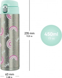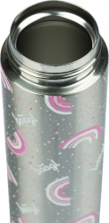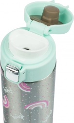 Uživajte u stilu i praktičnosti s ovom termos bocom koja nudi jednostavno otvaranje i integrirani silikonski usnik. Zahvaljujući zapremini od 450 ml, savršena je za svakodnevnu upotrebu. Boca je dostupna u nekoliko razigranih dizajna koje lako možete uskladiti s ostalom školskom opremom.