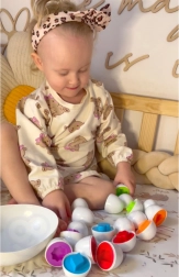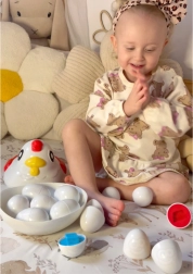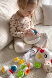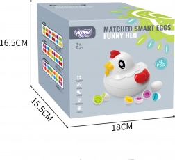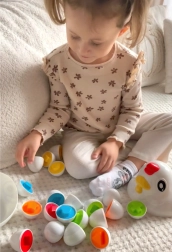 Šareno piliće sorter marke WOOPIE je multifunkcionalna edukativna igračka koja kroz igru razvija ključne vještine kod djece. Sadrži set igračaka u obliku jaja koje dijete treba ispravno umetnuti u odgovarajuće otvore, čime uči prepoznavanje oblika i boja te razvija manualnu spretnost.