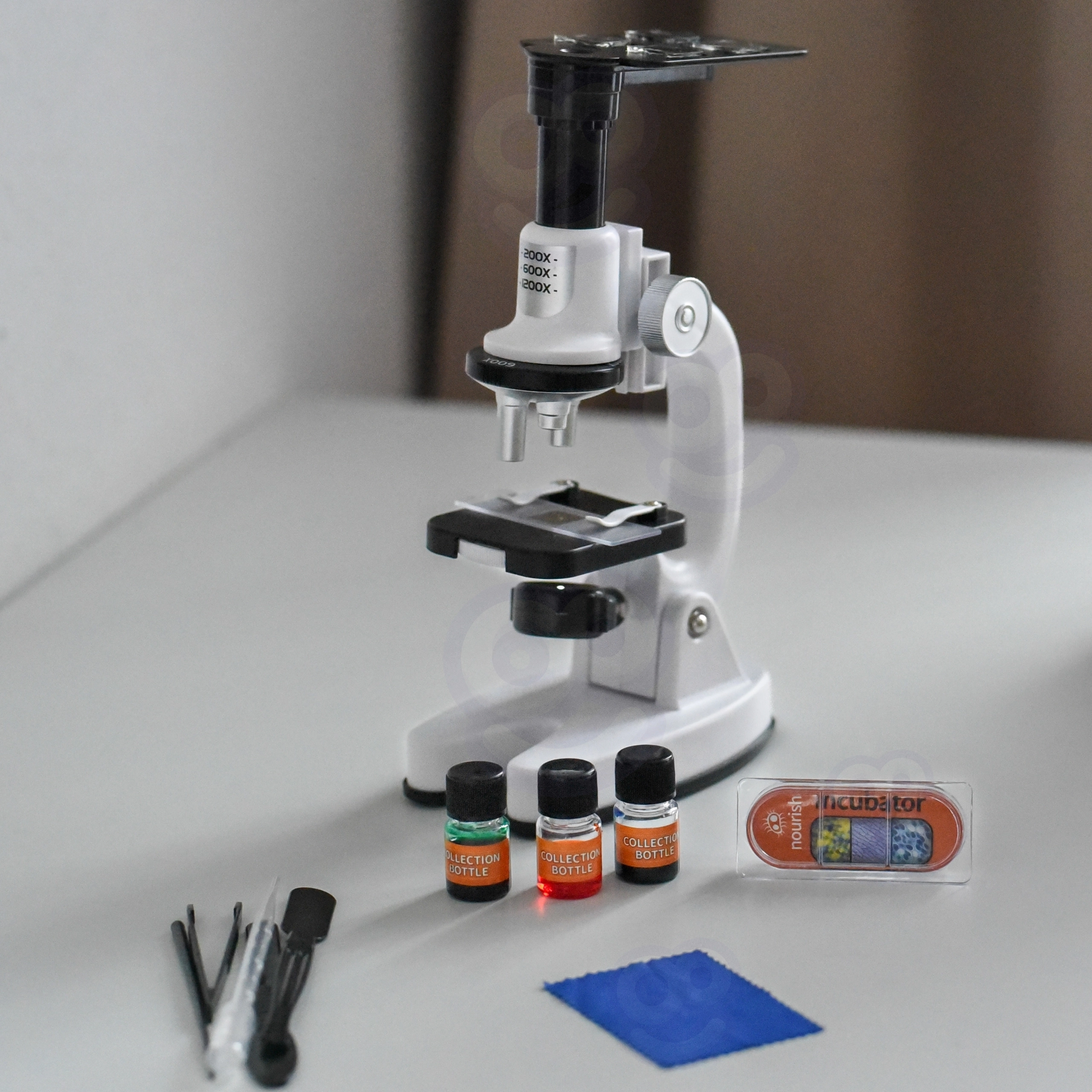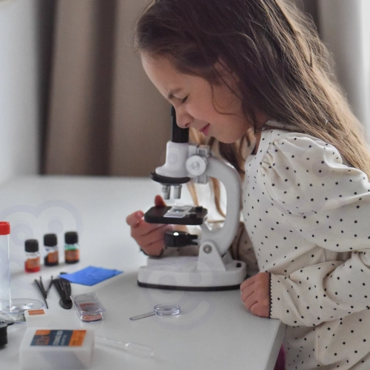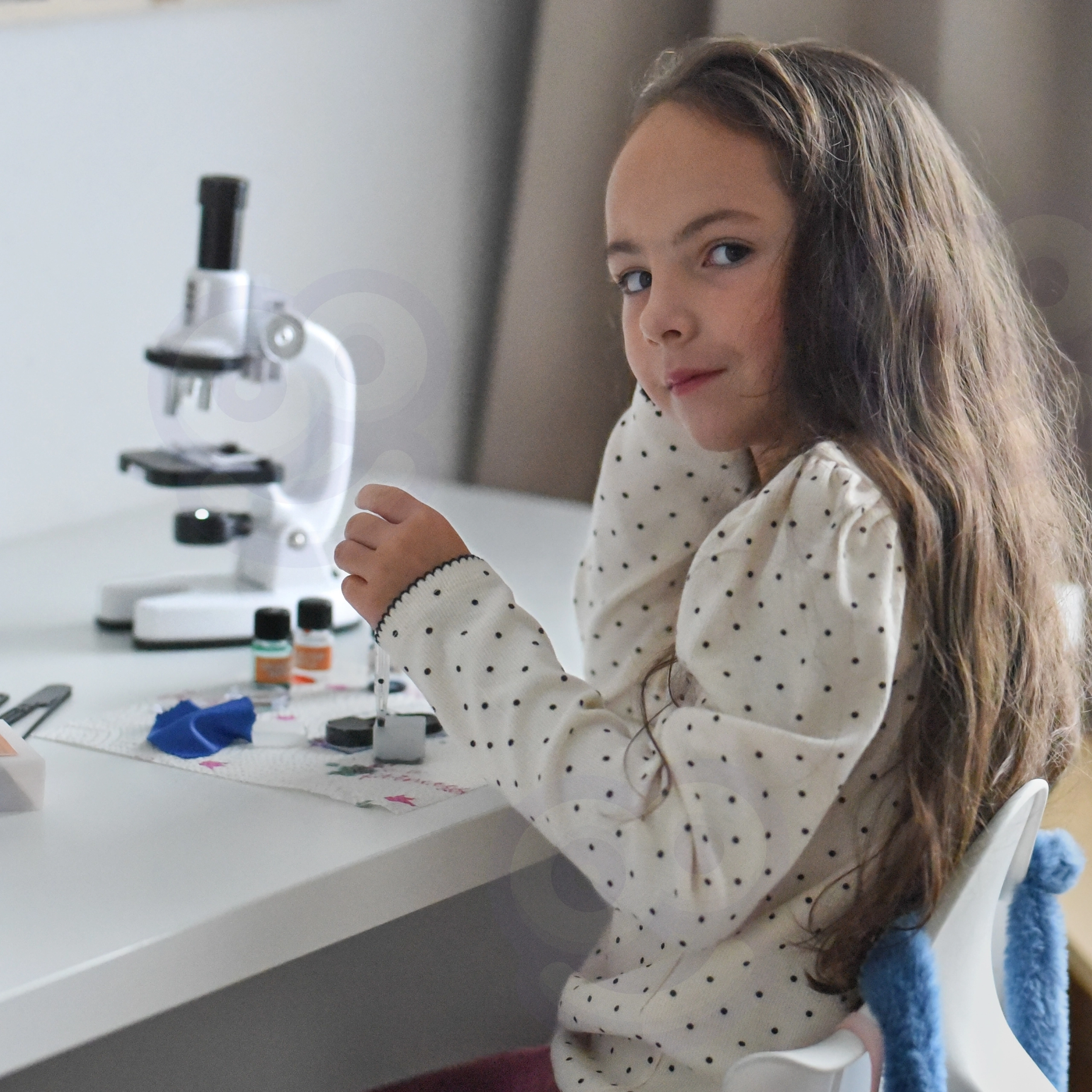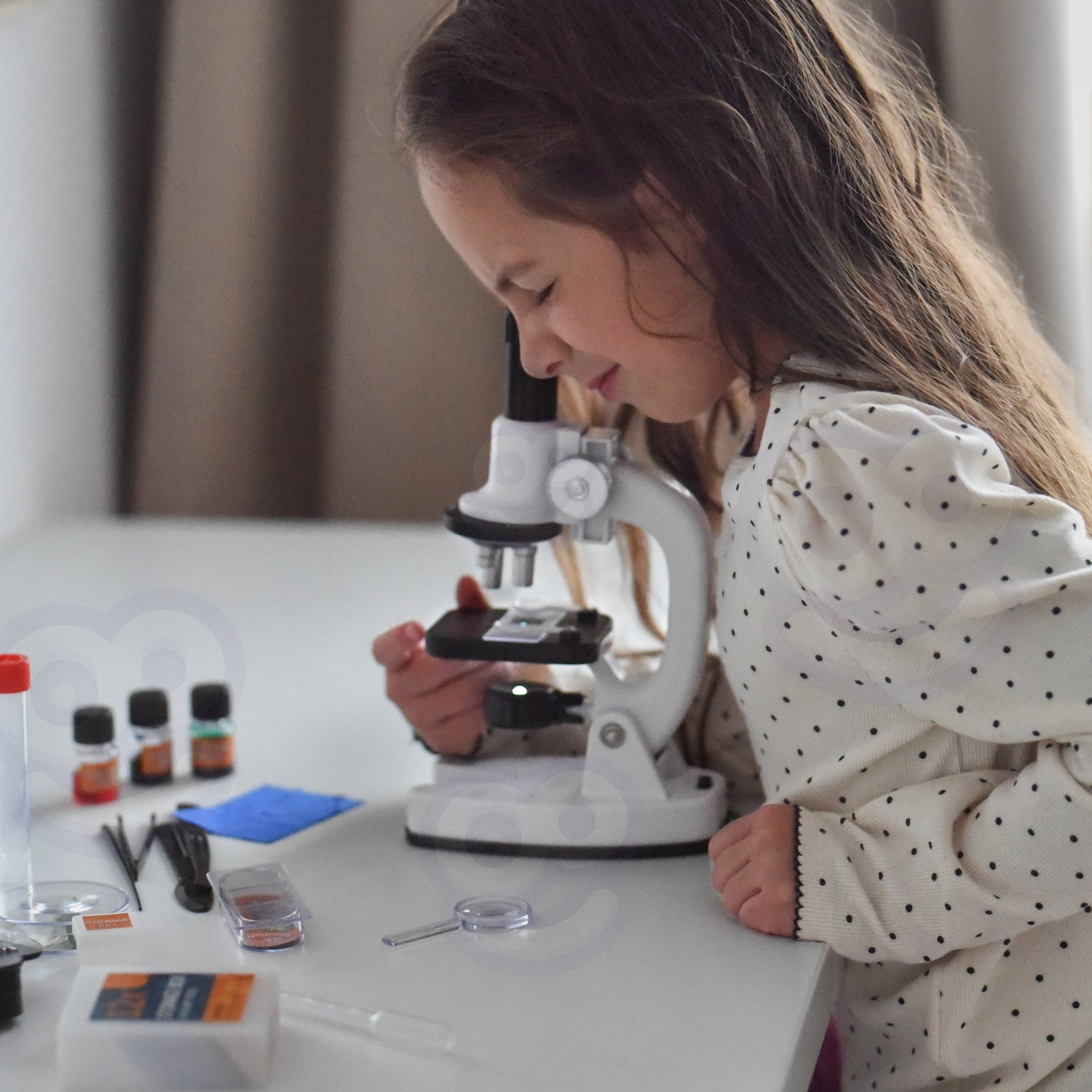 Ovaj kompaktni mikroskop savršen je izbor za prvi kućni laboratorij. Zahvaljujući trima razinama povećanja 200x / 600x / 1200x, ugrađenom LED osvjetljenju i okretnom kolor filtru djeca lako uočavaju strukture biljnih stanica, vlakana i fine detalje sitnih uzoraka.