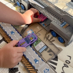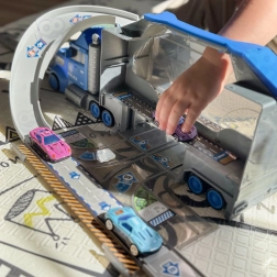 Kamion funkcionira kao pokretni transporter i kao prijenosni kofer za autiće i dodatke. Djeca tako mogu lako ponijeti cijeli set sa sobom bilo gdje.