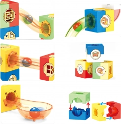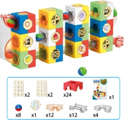 Ovaj kreativni set omogućuje djeci osmišljavanje i preuređivanje originalnih labirinata za kuglice prema vlastitoj mašti. Zahvaljujući kombinaciji kockica, ravnih i kosih elemenata te prozirnih cijevi, praćenje kretanja kuglica je privlačno i edukativno – razvija logiku, finu motoriku i prostorno razmišljanje.