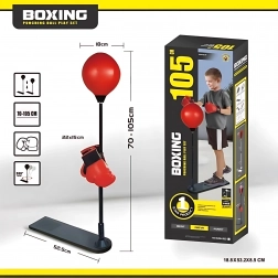 Dječji boksački set marke Woopie donosi veselje i mnogo prilika za kretanje i trening. Set uključuje boksačke rukavice i podesivi stalak s loptom. Ovaj je set namijenjen djeci od tri godine naviše i prilagođava se njihovoj visini zahvaljujući mogućnosti podešavanja od 70 do 105 cm.