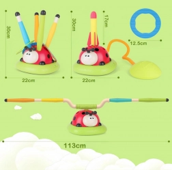 • - Raketomet pokretan snagom zraka; dijete pritisne zračni jastučić, raketa poleti do 15 metara visine.