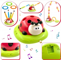 • - Sadrži 12 šarenih prstenova koje djeca bacaju na rotirajuću bubamaru. Izvrsna aktivnost za razvoj refleksa i preciznosti.