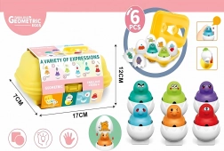 Svako jaje na donjoj strani ima jedinstven geometrijski oblik koji pristaje u odgovarajući otvor u kutiji. Vesela lica odlično pomažu djeci prepoznavati i imenovati emocije. Lako i ugodno usvajaju kako različiti osjećaji izgledaju i što znače. Ova igračka nudi fantastičan trening logičkog razmišljanja i koordinacije!