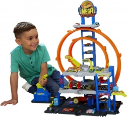 Maxi garaža Hot Wheels City donosi dinamičnu igru na tri kata – od autopraonice u prizemlju preko ručnog dizala do starta s gornjeg kata. Pokretač šalje auta u dvostruku petlju, a prekidači određuju na koji kat će vozilo stići. Odlično za samostalnu i zajedničku igru.