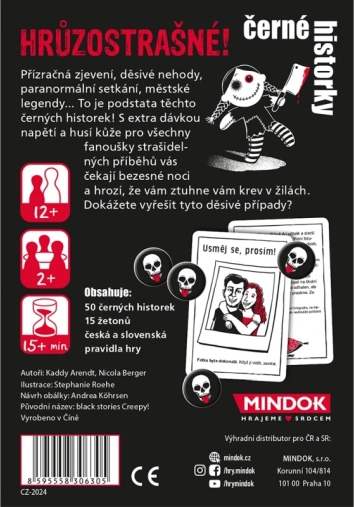 Crne priče: Jezive donose novi špil zloslutnih priča koje ćete razotkriti samo uz pametna pitanja i suradnju. Svaka priča je kratka zagonetka s mračnom pozadinom: do istine dolazite postavljanjem postupnih pitanja i slaganjem tragova.