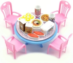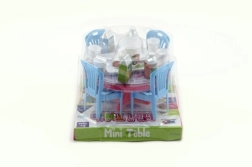 Ovaj set namještaja za lutke unosi u igru lijepi stolić sa stolicama i sitnim dodacima. Zahvaljujući kompaktnoj veličini od 12 cm savršeno pristaje manjim lutkama i kućicama. Lagana plastična izrada je izdržljiva i jednostavna za održavanje.