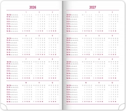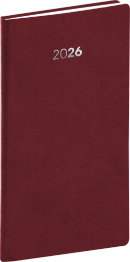 Planerski džepni dnevnik Balakon 2026 dostupan je u elegantnoj bordoj boji. Njegova površina poznata je po kvalitetnom i izdržljivom materijalu koji osigurava dugu trajnost.