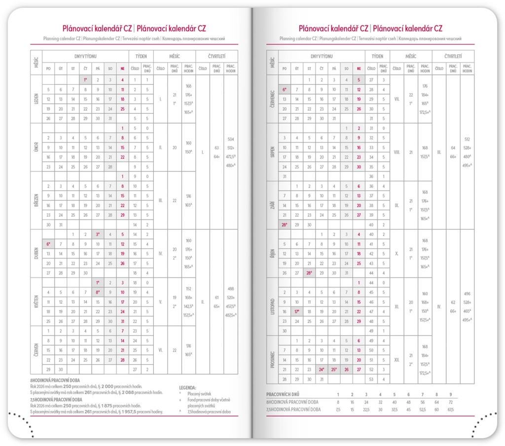 - Popis blagdana za Češku i Slovačku Republiku te međunarodne blagdane, što olakšava planiranje putovanja i sastanaka.