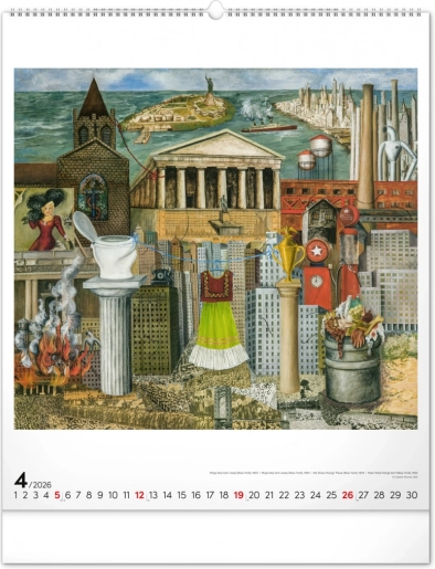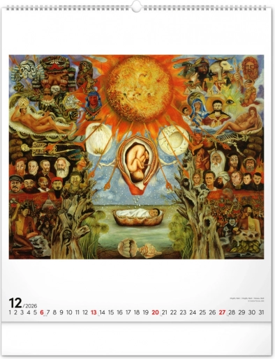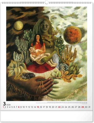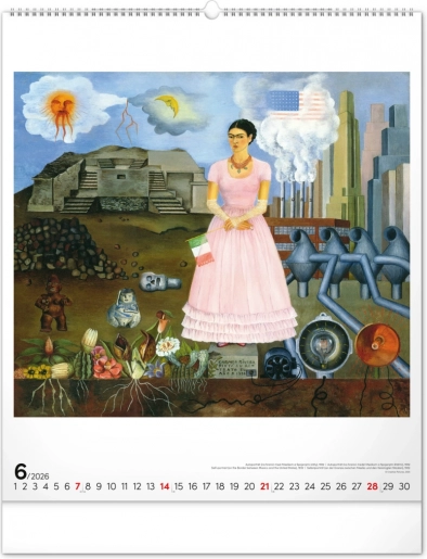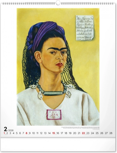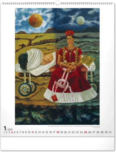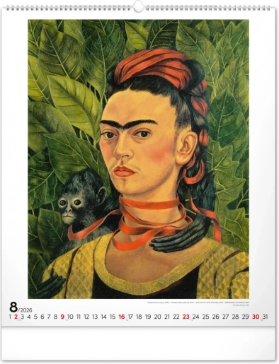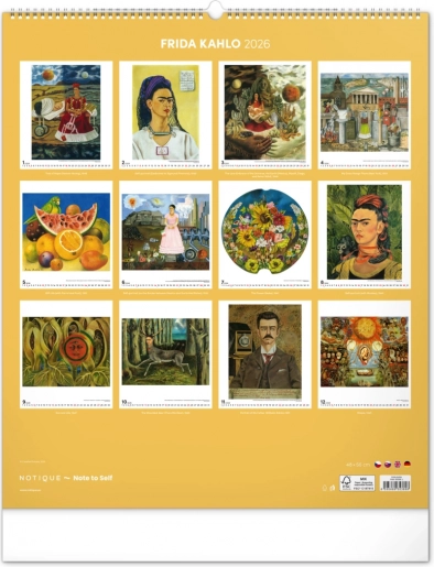Otkrijte čaroliju umjetnosti Fride Kahlo uz ovaj velikog formata zidni kalendar za 2026. godinu. Sadrži dvanaest kultnih slika meksičke slikarice, simbola hrabrosti i jedinstvene umjetnosti.